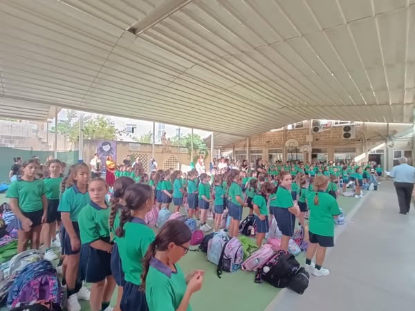 On Wednesday 24th September 2025, the school welcomed the students for another scholastic year. The girls were given a warm welcome by all the staff members. The day started with the morning assembly where all the students and educators gathered in the yard for the morning prayers. During the assembly, Dr. Kenneth Vella, the Headmaster, welcomed the girls and urged them to do their best during the scholastic year. He also introduced the new girls who are attending the school and the new members of staff.
