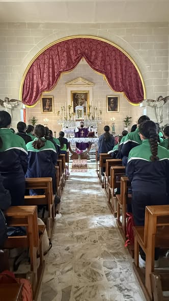 On Wednesday 4th March 2026, the Senior 1 and 2 classes attended a Lenten reflection session at the parish centre of Christ the King Basilica. The girls participated eagerly in the session which was delivered by Rev. Fr. Bernard Micallef who discussed with the girls the importance of appreciation both towards our own selves and also others through discussions and hands-on activities. The session was followed by the celebration of the Holy Eucharist.