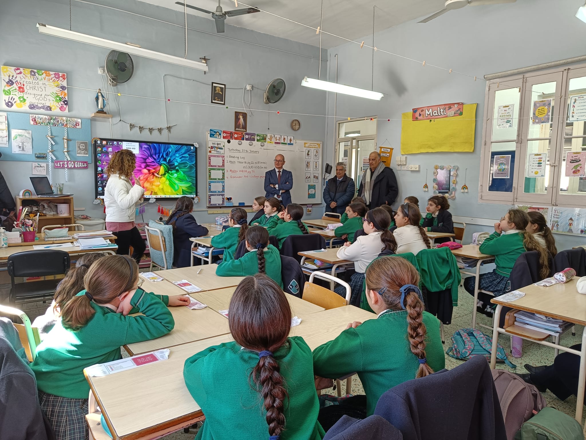 On Monday 27th January 2026, Mr. Glenn Bugeja, Head of Corporate Sustainability for HSBC Bank Malta p.l.c., and Mr. Horace Laudi, Policy Consultant within the Ministry for Education, Sport, Youth, Research and Innovation, visited our school during the Grade 5s Library / ICT lesson to witness the Financial Literacy sessions that are being delivered at school. Last October, our school was accredited the Centre of Excellence Award in Financial Literacy during the Financial Capability conference after 3 teachers from our school had received training and were implementing financial literacy in their respective lessons. Ms. Amy Lewis, in her P.E. lessons, was making the students aware about the financial market. Ms. Mary Grace Grech, in her Library and Music lessons, discussed wants and needs and budgeting; during the ICT lessons with Ms. Cristina Spiteri, the students had the chance to do some hands-on activities.
